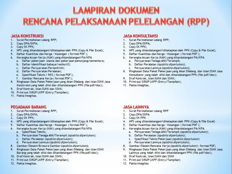 Dikirim: 24 Jan 2018, 09:01 Contoh Format Kelengkapan Dokumen RPP & Permohonan Lelang Sumber: ULP - Biro Layanan Pengadaan Setda. Prov. Kep. Bangka BelitungPenulis: Remi Aryanto, S.Pi - ULP
