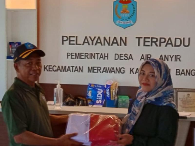 Penyerahan Bendera Merah Putih kepada Pemerintah Desa Air, Kecamatan Merawang, Kabupaten Bangka dalam rangka Dirgahayu Republik Indonesia ke 79