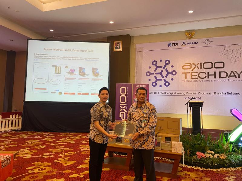 AXIOO Indonesia bersama PT Aneka Produk Nasional mengadakan event Axioo Tech Day di Provinsi Kepulauan Bangka Belitung, bertempat di Swiss Bel Hotel Pangkalpinang, Kamis (30/5/2024). Undangan yang dihadiri oleh masing-masing Perangkat Daerah/Dinas/Biro termasuk Pejabat Pembuat Komitmen (PPK), Pejabat Teknsi Pelaksana Kegiatan (PPTK) yang berhubungan langsung dalam Pengadaan Barang/Jasa Pemerintah. Sosialisasi yang dilakukan oleh salah satu Produsen Teknologi asal Indonesia ini dihadiri langsung oleh Plt Asisten II, Setda Bangka Belitung, Hartono sekaligus membuka acara mewakili Pj Sekda Babel Fery Afrianto. Pemerintah Provinsi Kepulauan Bangka Belitung menyambut baik kegiatan ini, dimana Program ini sangat bermanfaat terutama dalam meningkatkan penggunaan produk-produk dalam negeri sekaligus salah satu upaya Pemerintah untuk mendorong masyarakat agar lebih menggunakan Produk Dalam Negeri (PDN)." Hal tersebut dilakukan dengan tujuan memberikan multiplier effect, meningkatkan lapangan pekerjaan, menggerakkan sektor ekonomi serta menumbuhkan industri kecil menengah/UKM di dalam negeri," ujar Hartono.