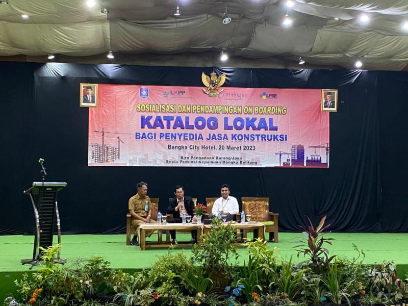 Biro Pengadaan Barang/Jasa Setda Provinsi Kepulauan Bangka Belitung melalui bidang Pembinaan dan Advokasi melaksanakan kegiatan Sosialisasi dan Pendampingan On Boarding Katalog Lokal bagi Penyedia Jasa Konstruksi. Kegiatan yang berlangsung di Ball room Bangka City Hotel Pangkalpinang dihadiri oleh Nara sumber dari LKPP (Lembaga Kebijakan Pengadaan Barang/Jasa), Sekretariat DPRD Provinsi Kepulauan Bangka Belitung, Kepala Biro Pengadaan Barang/Jasa Setda Provinsi Kepulauan Bangka Belitung, Kepala Bagian/Subkoordinator dan Penyedia Jasa Konstruksi yang ada di Provinsi Bangka Belitung. (20/03).