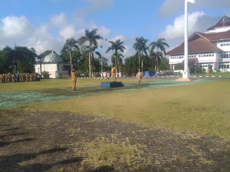 Upacara Bendera Mingguan di Lingkungan Pemerintah Provinsi Kepulauan Bangka Belitung yang dipimpin langsung oleh Kepala Biro Pengadaan Barang/Jasa dihadiri oleh peserta upacara dari masing-masing Instansi/OPD Perangkat Daerah bertempat di halaman Kantor Gubernur Kepualuan Bangka Belitung, Senin (1/8).